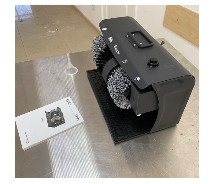 3 ротационные щетки на тихом ходу 1 щетка для чистки для крупной грязи 2 полировальные щетки из терилена (полиэфир) для светлой или темной обуви Дозатор крема для обуви с шаровым клапаном для 100 мл жидкого крема для обуви (незаполненный)