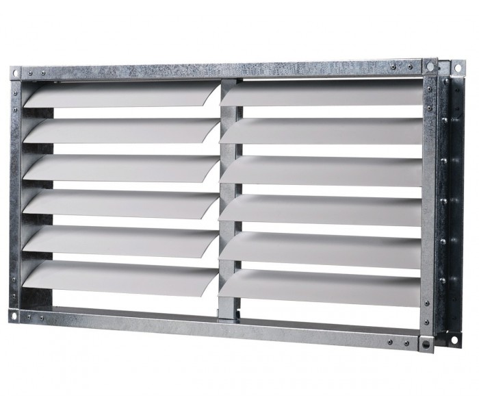 Корпус клапана изготовлен из оцинкованной стали. Клапан оснащен легкими гравитационными пластинами из пластика, находящихся на поворотных осях, встроенных во внешнюю рамку. Пластины клапана открываются под действием потока воздуха и автоматически закрываются при прекращении подачи воздуха. |