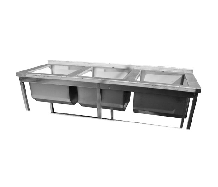 Особенности ванны моечной трехсекционной c бортом и полкой Tehma 1600х700х850мм H=300мм: