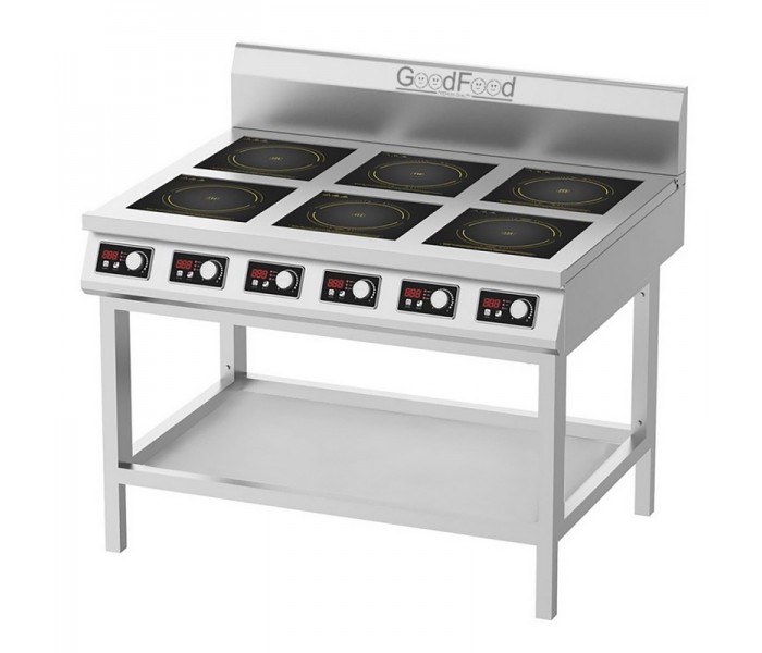 Индукционная плита GoodFood IC35 SESTETTO — профессиональное напольное оборудование с шестью зонами нагрева общей мощностью 21 кВт. Предназначена для интенсивной работы на кухнях ресторанов, столовых и производственных цехов, обеспечивая быстрый нагрев, точный контроль температуры и высокую энергоэффективность.