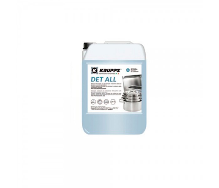 Krupps DET ALL — профессиональное жидкое моющее средство, специально разработанное для эффективной и бережной очистки алюминиевых изделий. Подходит для интенсивного использования на профессиональной кухне и в зонах мойки.