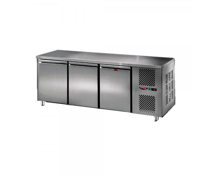 Профессиональный холодильный стол Tecnodom P-TF03MIDGN объёмом 460 л предназначен для хранения охлаждённых продуктов и одновременной организации рабочей поверхности. Модель без борта, с тремя дверями и правым расположением холодильного агрегата, оптимальна для ресторанов и кухонь HoReCa.