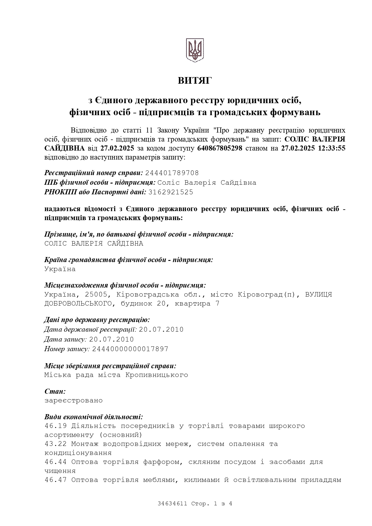 Фізична особа-підприємець Соліс Валерія Сайдівна
