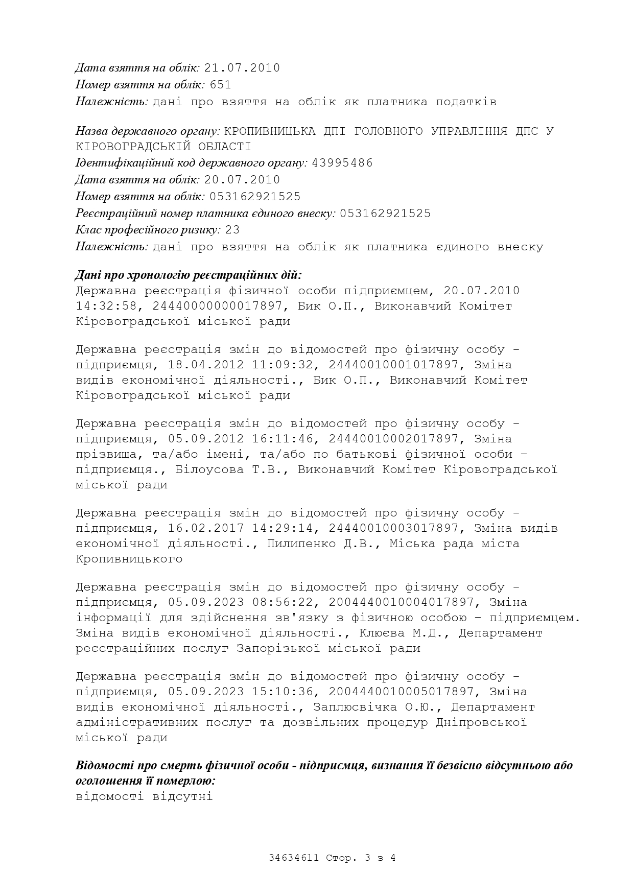 код за ДРФО 3162921525, ІПН 3162921525