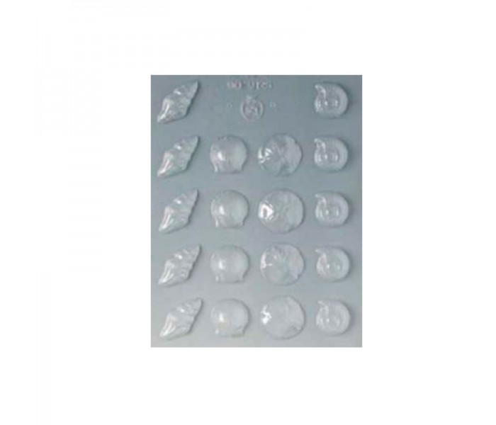 Форма для шоколаду (морські камінці) на формі 18 осередків, 4 види: Черепашка №1 - 25x30 h8 мм. / 5 шт. Черепашка №2 – O30 h8 мм./4 шт. Черепашка №3 – O35 h8 мм./4 шт. Черепашка №4 - 45x25 h8 мм. / 5 шт. Виробництво Martellato Італія. Пластикова форма для шоколаду - незамінний інвентар для складання поздоровлень та написів для тортів. Вона також зручна та легка у використанні. Якість матеріалу, з якого виготовлена ??форма, дає неперевершену гладкість та яскравість шоколадних цукерок, а також забезпечує легке вилучення готового виробу без ризику поломки.