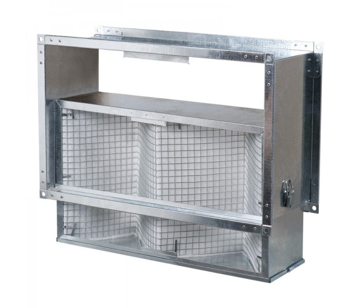 Касетні повітряні фільтри застосовуються для очищення припливного, а в ряді випадків і витяжного повітря в системах вентиляції та кондиціювання прямокутного перерізу. Служать для захисту повітроводів, теплообмінників, вентиляторів, приладів автоматики та іншого вентиляційного обладнання від запилення. Зводять до мінімуму забруднення стін та стель біля повітророзподільних пристроїв. Фільтри грубого очищення можуть застосовуватися як перший ступінь очищення перед більш ефективними фільтрами. | Корпус виготовлений із оцинкованої сталі. Фільтруючий елемент має кілька хвиль збільшення площі фільтрації. Елемент виготовлений з нетканого полотна із синтетичних волокон та захищений металевою сіткою від деформації повітряним потоком. Відкидна кришка фільтра обладнана замками важеля для швидкого доступу до змінного фільтруючого елемента. Фільтри невеликі за довжиною, що дозволяє їх використовувати навіть у дуже обмеженому просторі. Виготовляються із фільтруючих матеріалів класом очищення G4. |