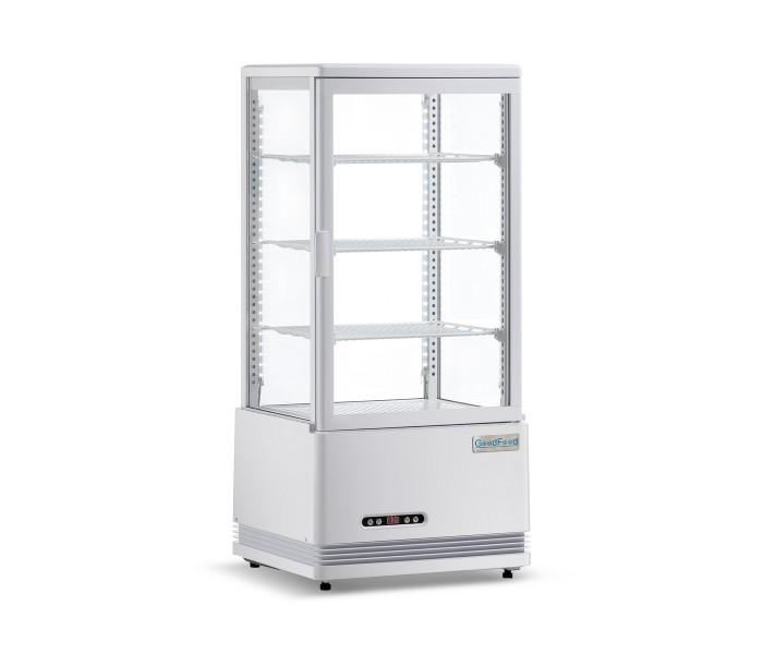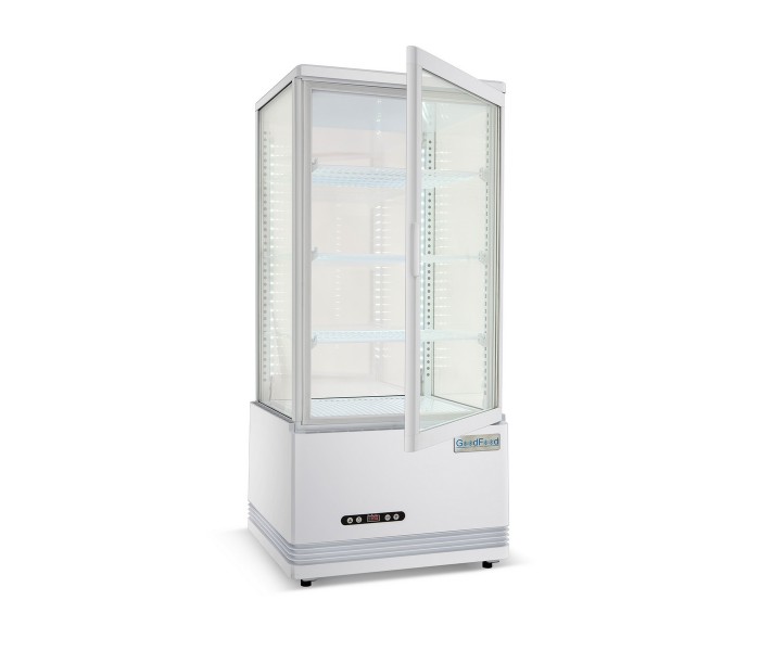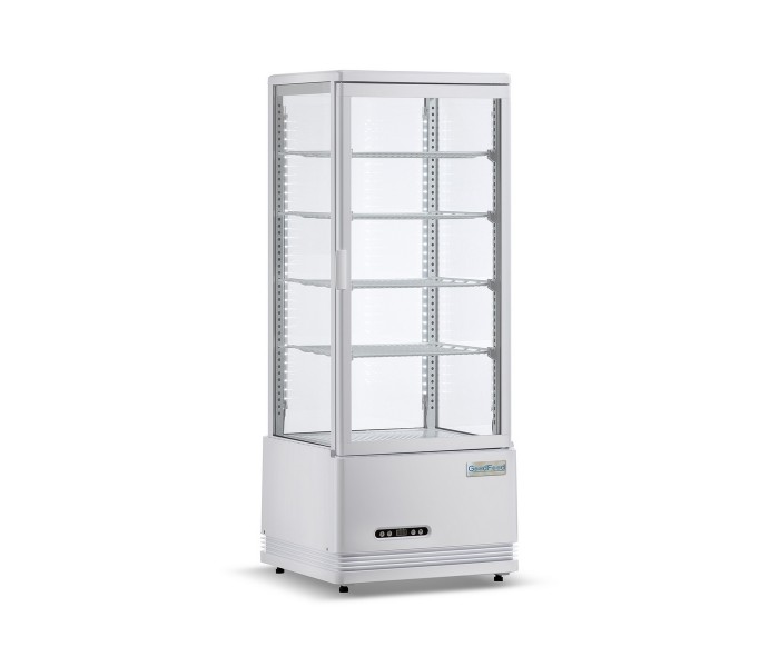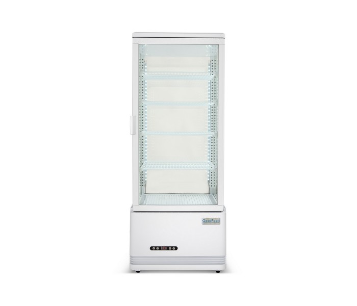Кондитерська шафа GoodFood RT98L біла - це сучасне та функціональне обладнання, спеціально розроблене для зберігання та демонстрації кондитерських виробів, тортів, тістечок, печива та інших солодощів. Ця шафа забезпечує оптимальні умови для збереження свіжості та апетитного вигляду кондитерських виробів, а також привертає увагу клієнтів своїм стильним та сучасним дизайном.