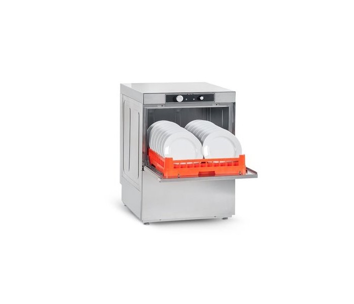 Фронтальна посудомийна машина Asber GE-500 RD B DD — компактне та продуктивне рішення для професійної кухні. Забезпечує швидке та якісне миття посуду за 120 секунд, оснащене вбудованими дозаторами, дренажним насосом та підходить для підключення до гарячої чи холодної води.