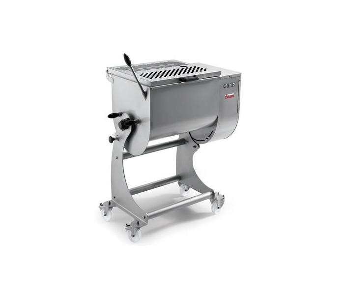 Професійна фаршемішалка Sirman IP 50 XP BA призначена для інтенсивного та рівномірного перемішування м'ясного фаршу та інших продуктів. Модель відрізняється високою надійністю, завантаженням до 50 кг, реверсивним двигуном та повністю виконана з харчової нержавіючої сталі AISI 304, що робить її ідеальною для м'ясних цехів та професійних кухонь.