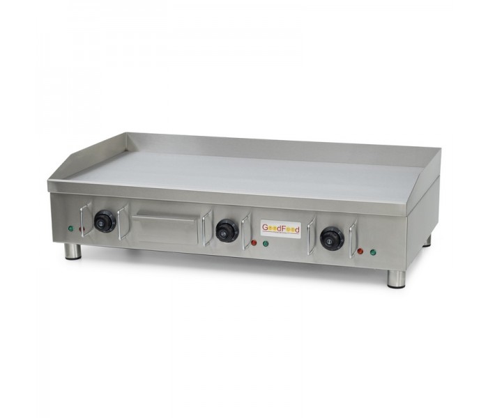 Електрична поверхня для смаження GoodFood EG90F призначена для професійного приготування м'яса, риби, овочів і напівфабрикатів. Гладка сталева поверхня товщиною 16 мм та три незалежні зони нагріву забезпечують рівномірне прожарювання та високу продуктивність на професійній кухні.
