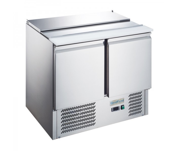 Саладетта GoodFood GF-S900-H6C — професійний холодильний стіл з верхом для гастроємностей, що охолоджується, призначений для зручного зберігання, демонстрації та швидкої підготовки салатів, закусок і гарнірів. Ідеально підходить для ліній роздачі та кухонь з інтенсивним робочим процесом.