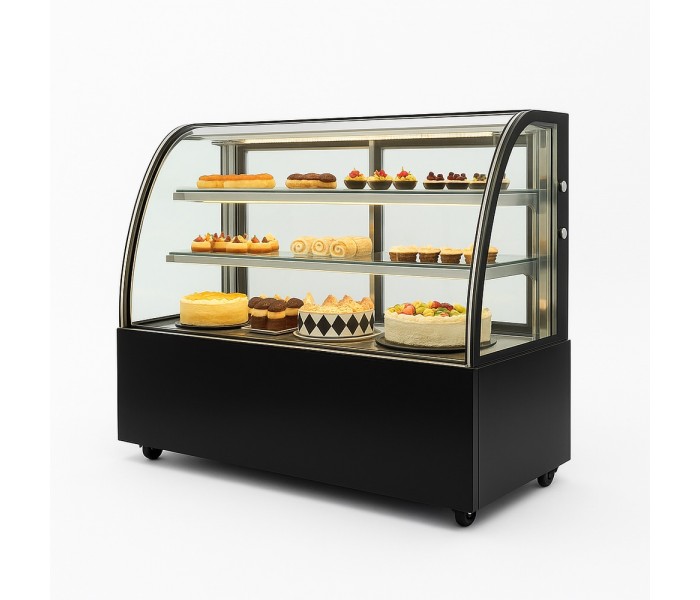 Холодильна вітрина Hurakan HKN-LPD210 BLACK об'ємом 210 л — стильне та функціональне рішення для демонстрації та зберігання кондитерських виробів. Чорний корпус із зашивкою зі штучного мармуру та вигнуте скло надають вітрині преміального вигляду, а надійне охолодження +2…+8 °C забезпечує свіжість продукції.