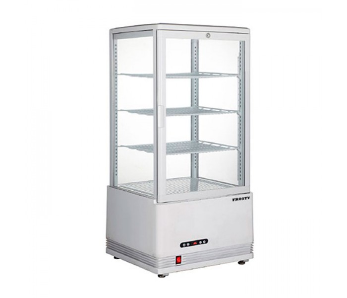 Компактна настільна холодильна шафа Frosty RT-78B-3 об'ємом 78 літрів призначена для ефектної демонстрації та зберігання охолоджених напоїв та продуктів. Панорамне скління з чотирьох сторін, LED-підсвічування та стабільне охолодження роблять модель чудовим рішенням для кафе, барів та торгових точок.